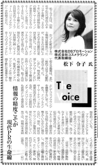 The Voice欄にて代表取締役 松下令子への取材記事が掲載されました。